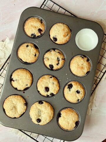 Yes! Add frozen blueberries to the batter straight from the freezer to avoid excess moisture. If defrosted, pat between paper towels to remove extra water before adding them to the batter.